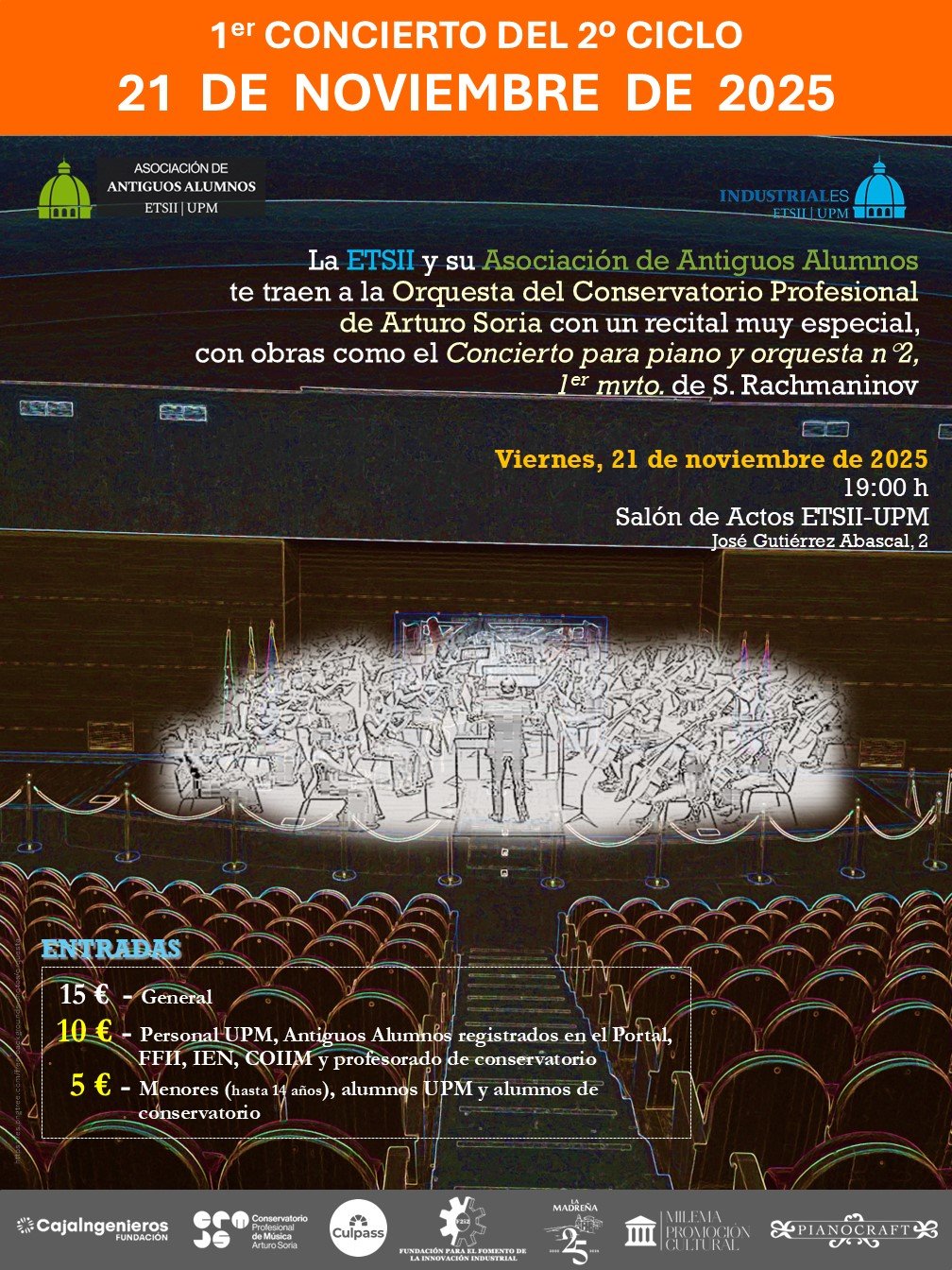 Por primera vez en la ETSII, tendremos la oportunidad de escuchar una ORQUESTA, en su extraordinario Salón de Actos.